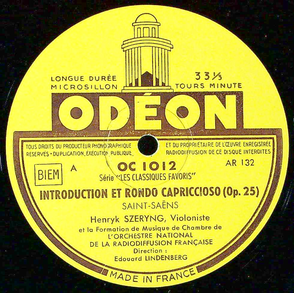 商品コード:1356-007[ODÉON] H.シェリング(vn) / サン・サーンス:ハバネラ, 序奏とロンド・カプリチオーソ