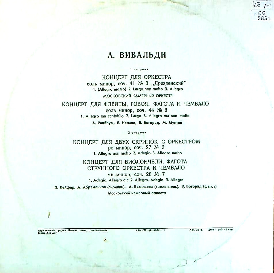 商品コード:REG-3881[露MELODIYA] R.バルシャイ/ 「ヴィヴァルディ:協奏曲集」