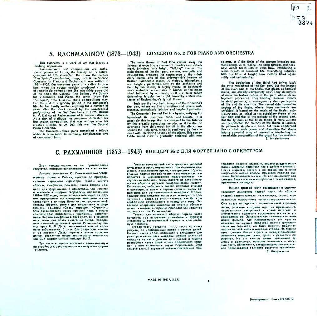 商品コード:REG-3874[露MELODIYA] R.ケレル(pf)/ ラフマニノフ:Pf協奏曲2番