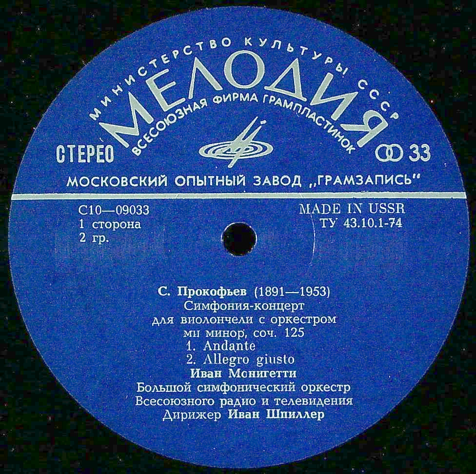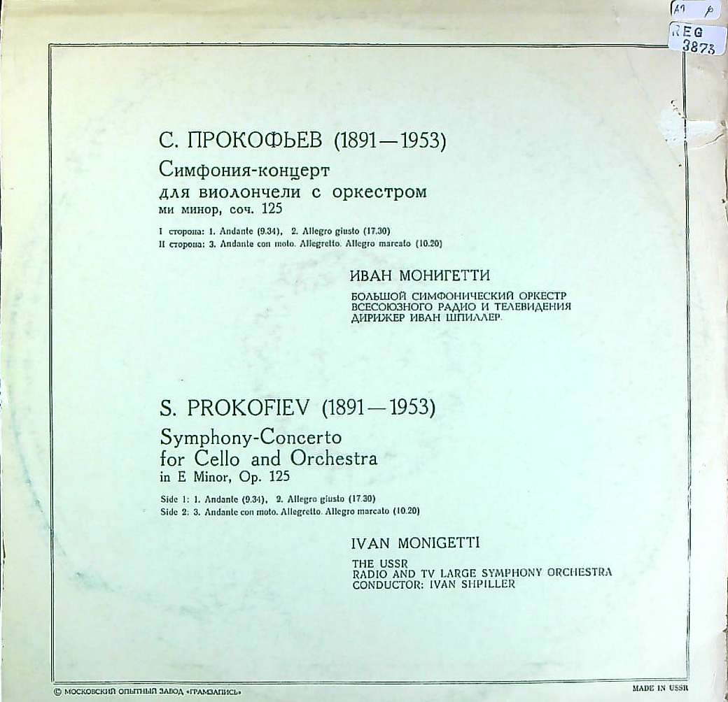 商品コード:REG-3873[露MELODIYA] I.モニゲッティ(vc)/ プロコフィエフ:Vcと管弦楽のための交響協奏曲
