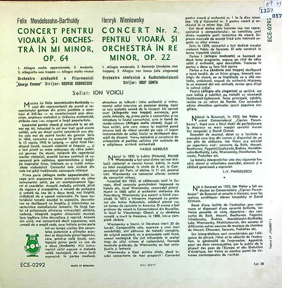 商品コード:1357-057[Electrecord] I.ヴォイク(vn)/ Vn協奏曲/メンデルスゾーン, ヴィエニャフスキ:2番