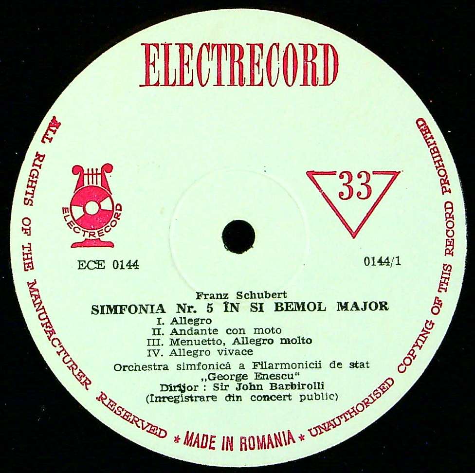 商品コード:1357-050tb[Electrecord] J.バルビローリ/G.ジョルジェスク/ シューベルト:交響曲5番, 8番「未完成」