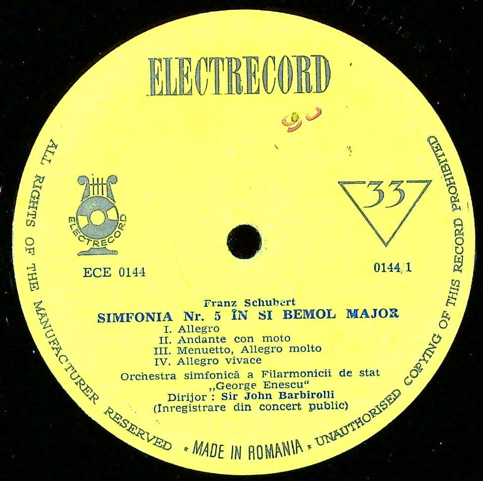 商品コード:1357-050[Electrecord] J.バルビローリ/G.ジョルジェスク/ シューベルト:交響曲5番, 8番「未完成」