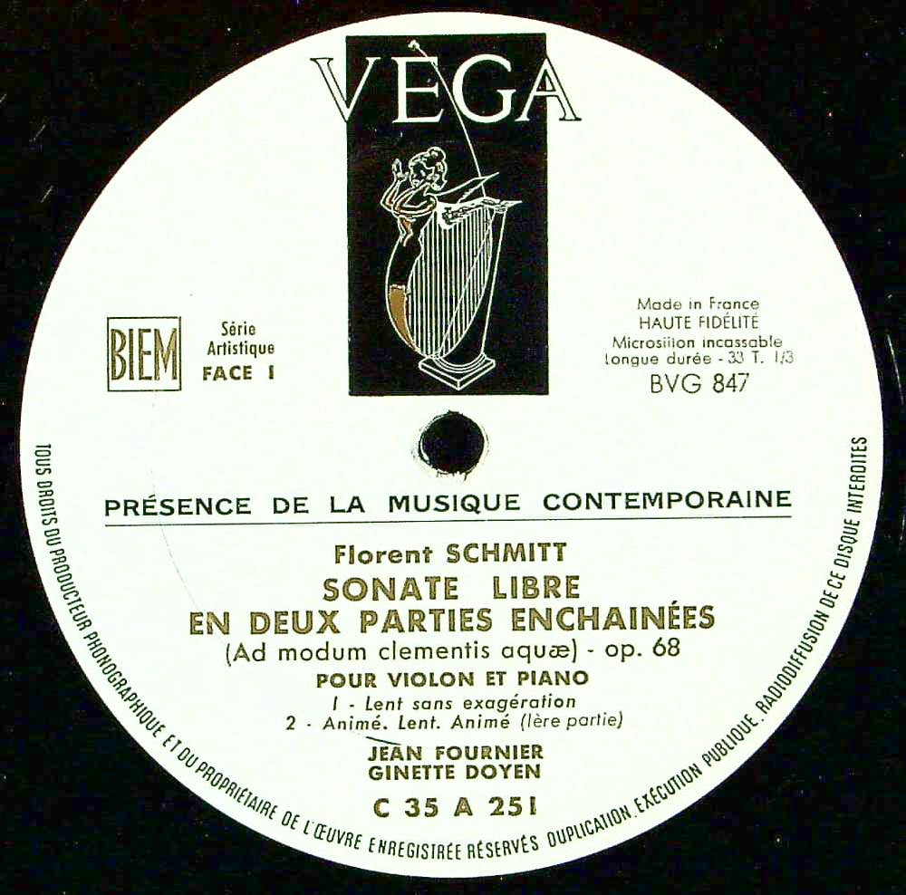 商品コード:1357-003[VÉGA] J.フルニエ(vn)/ シュミット:2つの声部の結びあった自由なソナタ(Vnソナタ)