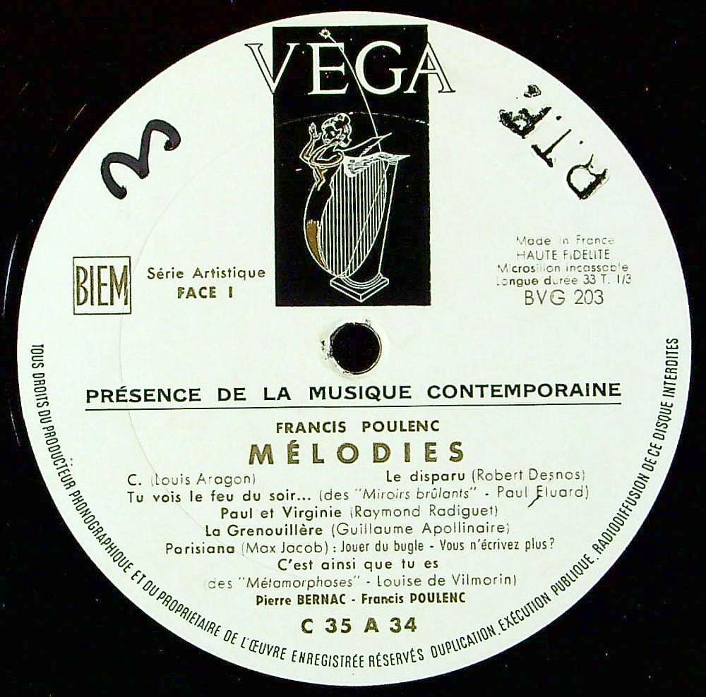 商品コード:1357-002[VÉGA] P.ベルナック(br) / プーランク:歌曲集-2