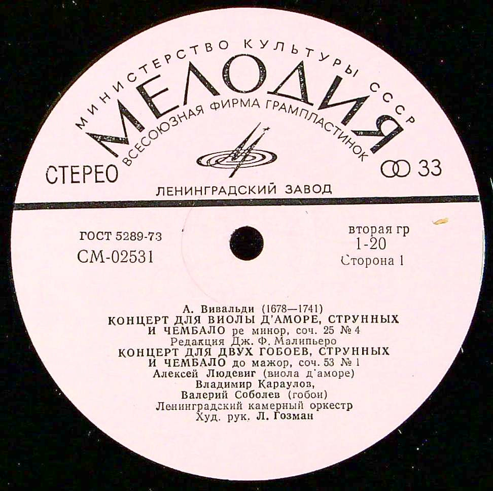 商品コード:REG-3895[露MELODIYA] V.カラウロフ, V.ソボレフ(ob) 他/ ヴィヴァルディ:ヴィオラ・ダモーレ協奏曲, 2台Obのための協奏曲 他
