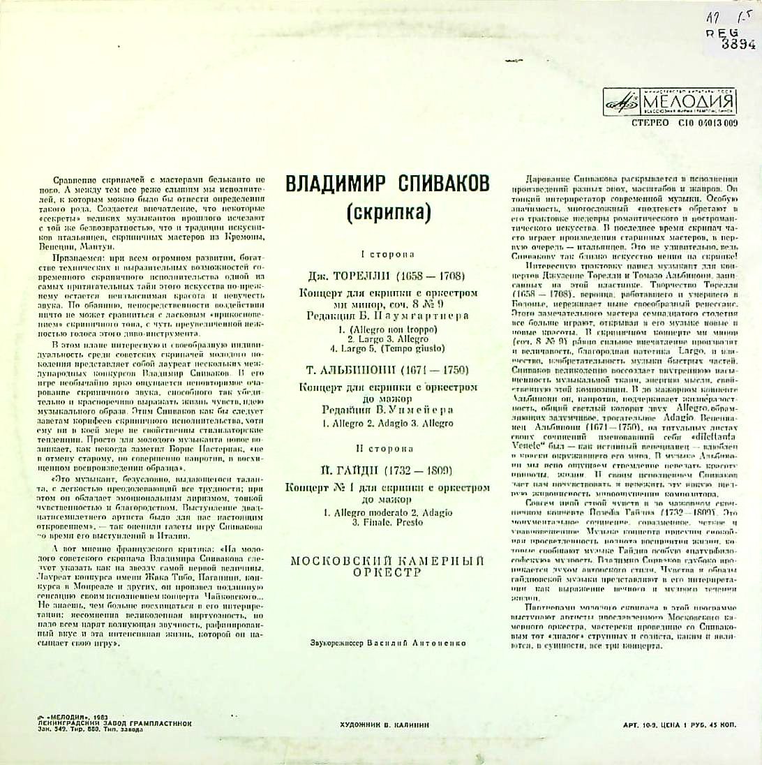 商品コード:REG-3894[露MELODIYA] V.スピヴァコフ(vn)/ 「Vn協奏曲集」トレッリ, アルビノーニ, ハイドン