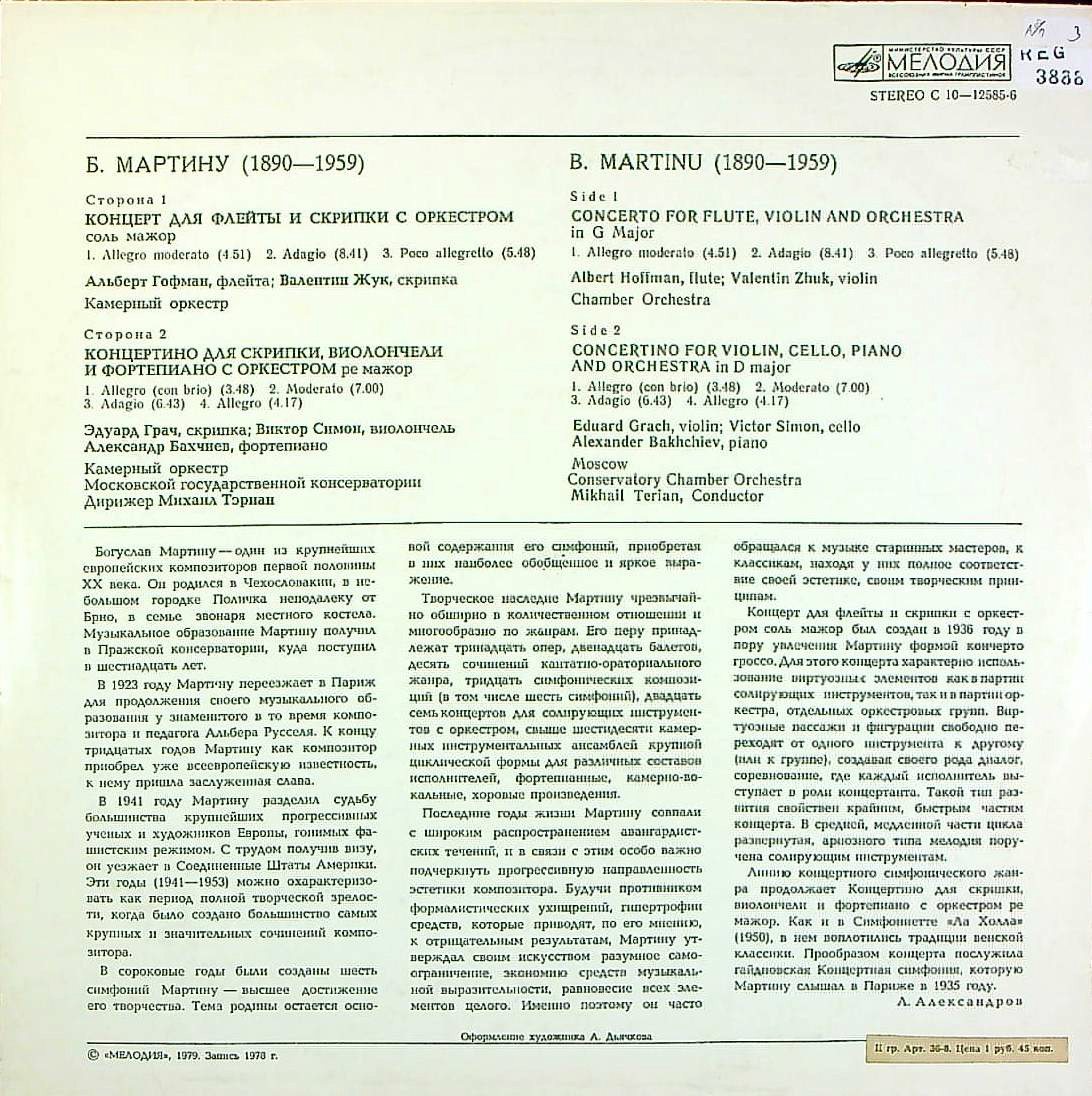 商品コード:REG-3888[露MELODIYA] E.グラチ(vn) V.シモン(va) A.バフチエフ(pf)/ マルティヌー:Fl・Vn協奏曲, Vn・Vc・Pf協奏曲