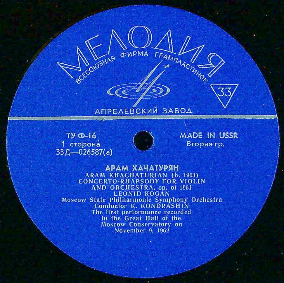 商品コード:REG-3886[露MELODIYA] L.コーガン(vn) /M.ロストロポーヴィチ(vc)/ ハチャトゥリアン:Vnのためのコンチェルト・ラプソディ, Vcのためのコンチェルト・ラプソディ