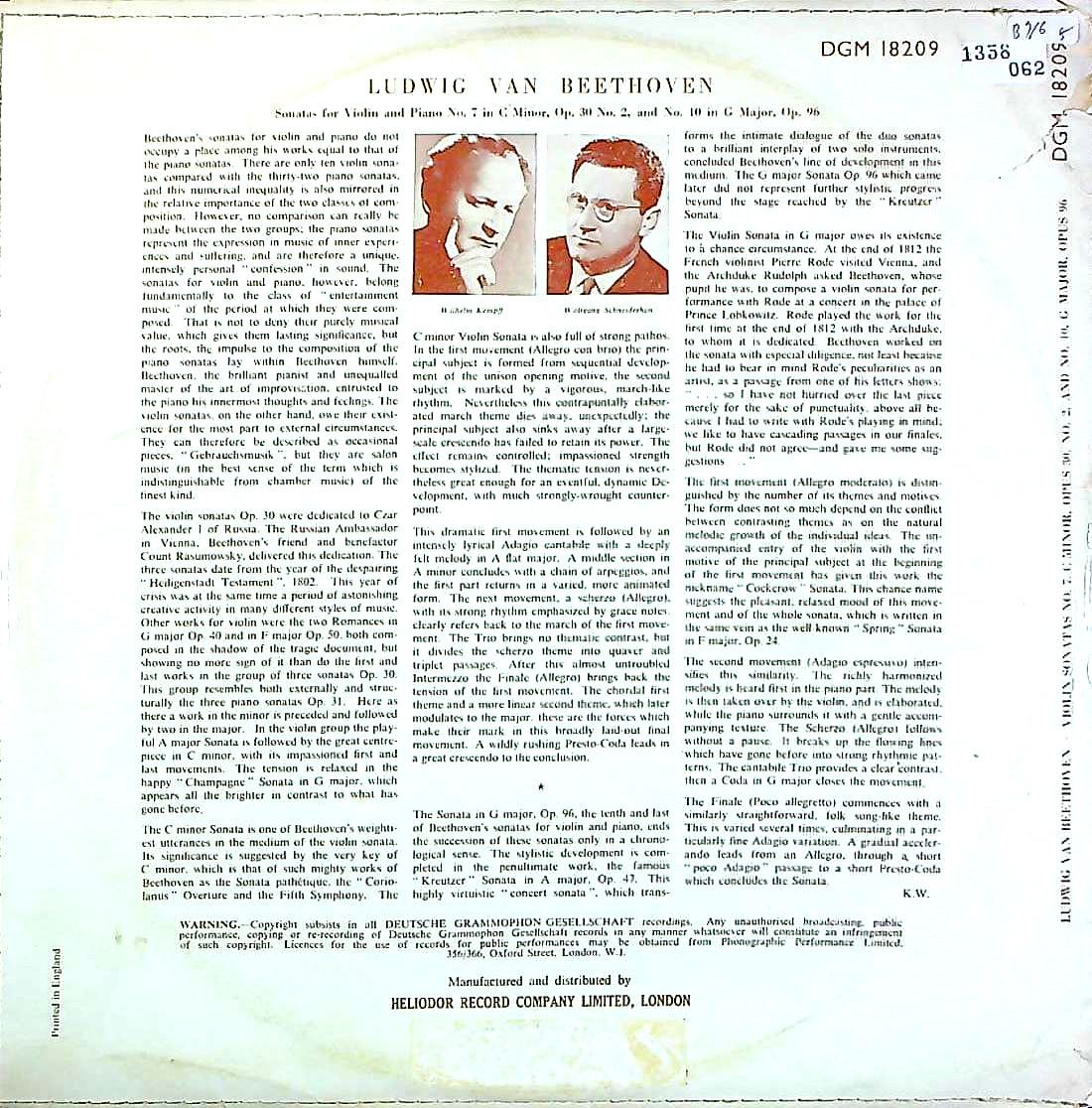 商品コード:1358-062[DGG] W.シュナイダーハン(vn)/ ベートーヴェン:Vnソナタ7, 10番
