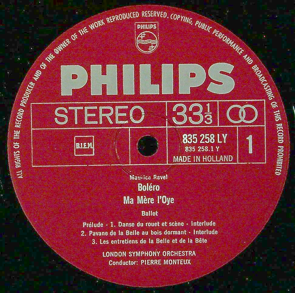商品コード:1358-050[PHILIPS] P.モントゥー/ ラヴェル:ボレロ, バレエ音楽「マ・メール・ロワ」(全曲), ラ・ヴァルス