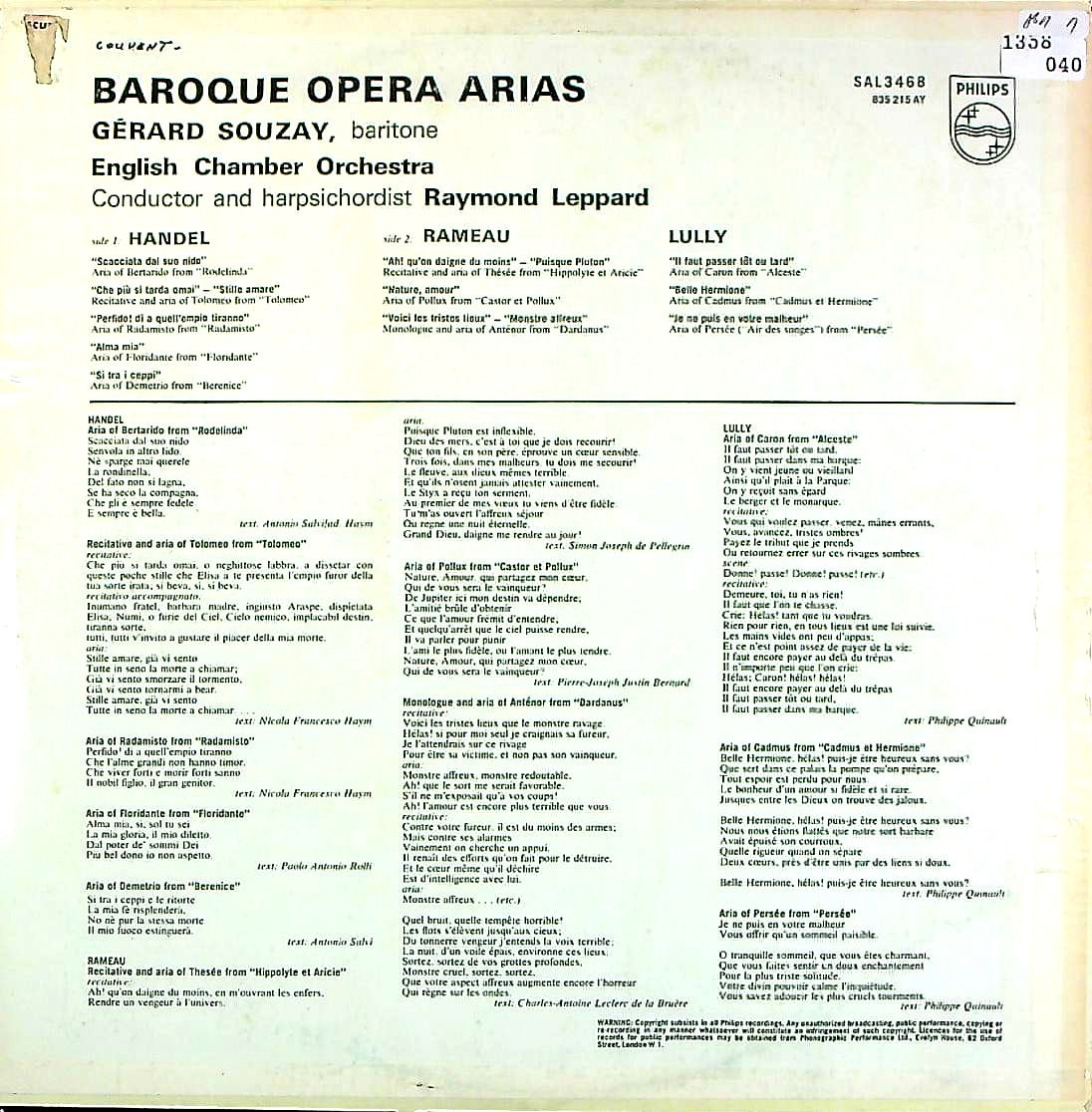 商品コード:1358-040[PHILIPS] G.スゼー(br)/ バロック・オペラ・アリア集/ヘンデル:, ラモー, リュリ