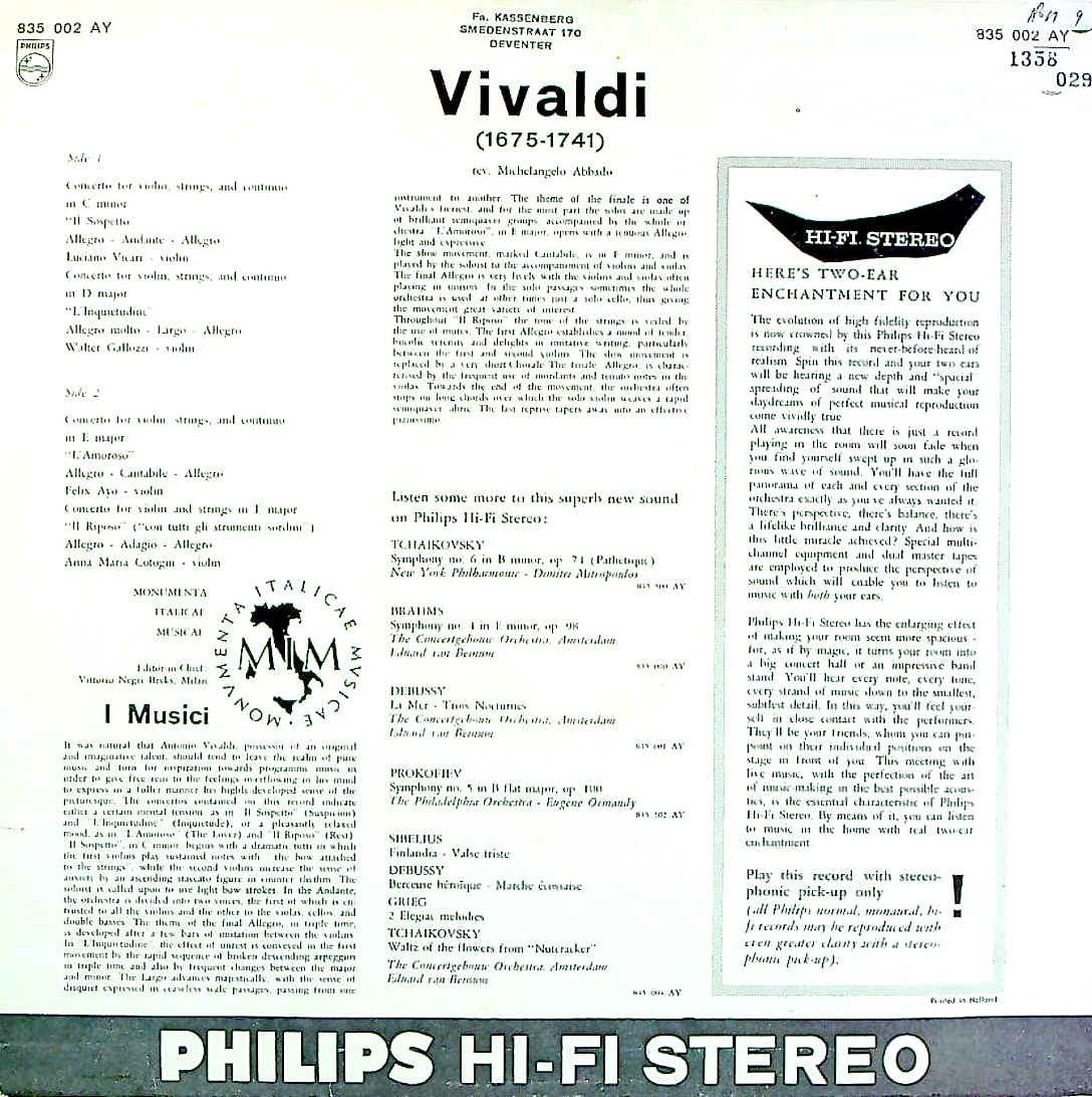 商品コード:1358-029[PHILIPS] イ・ムジチ合奏団/ ヴィヴァルディ:Vn協奏曲RV.199「疑い」, RV.234「不安」, Rv.271「恋人」, Rv.270 「休息」