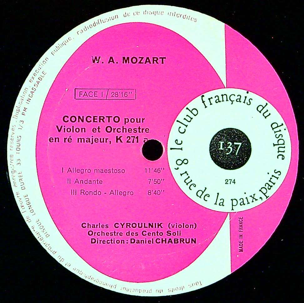 商品コード:1358-016b[Club Français] C.シルルニク(vn)/ モーツァルト:Vn協奏曲7番K.271a, 5番K.219「トルコ風」