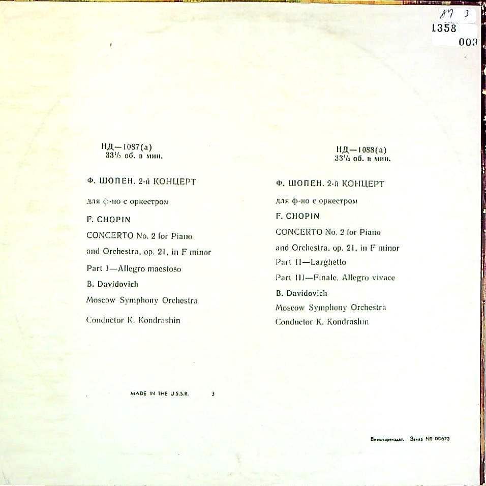 商品コード:1358-003[MELODIYA] B.ダヴィドヴィチ(pf)/ ショパン:Pf協奏曲2番