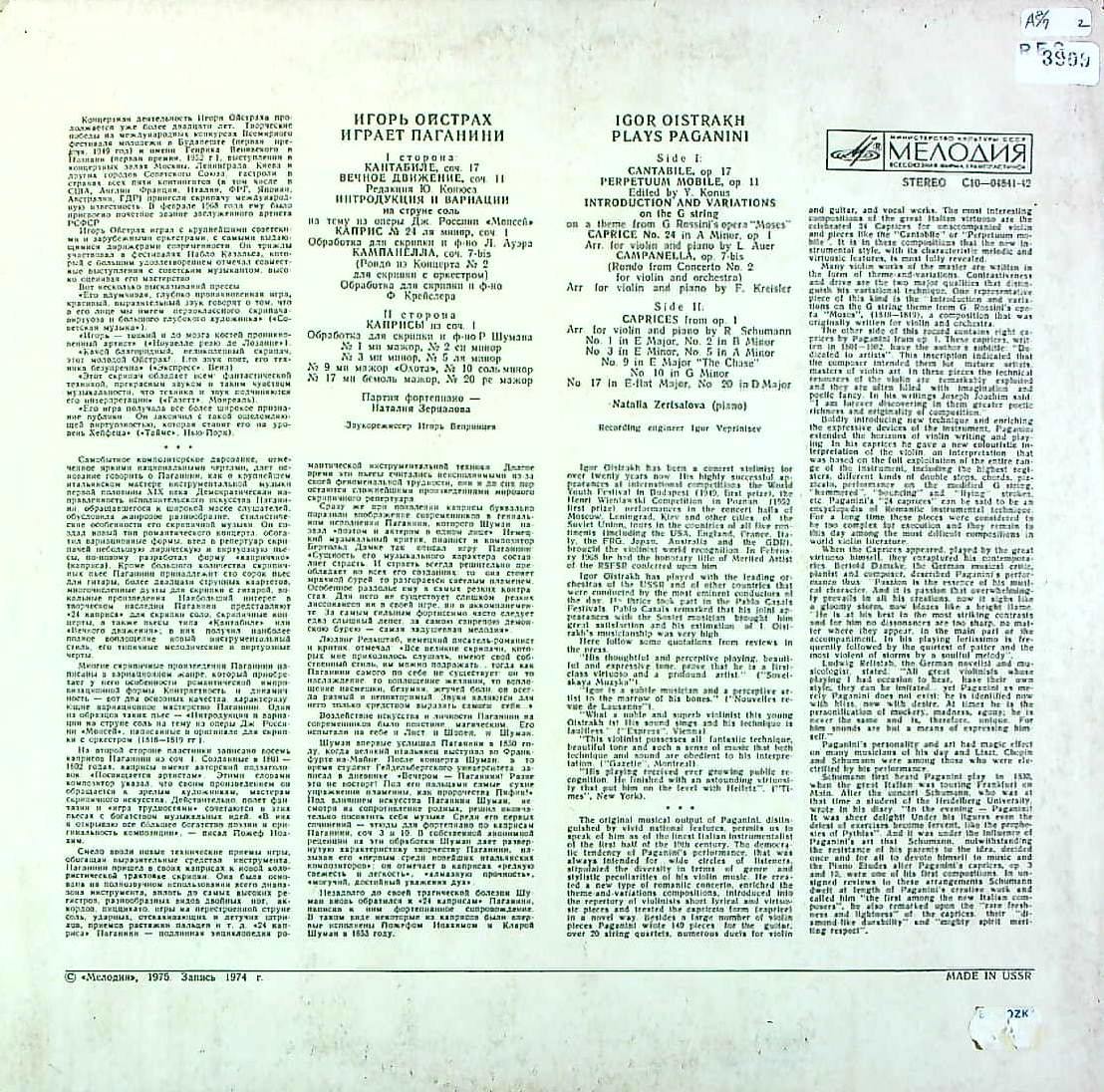 商品コード:REG-3909[露MELODIYA] I.オイストラフ(vn)/ 「パガニーニ作品集」カンタービレ, 無窮動 他