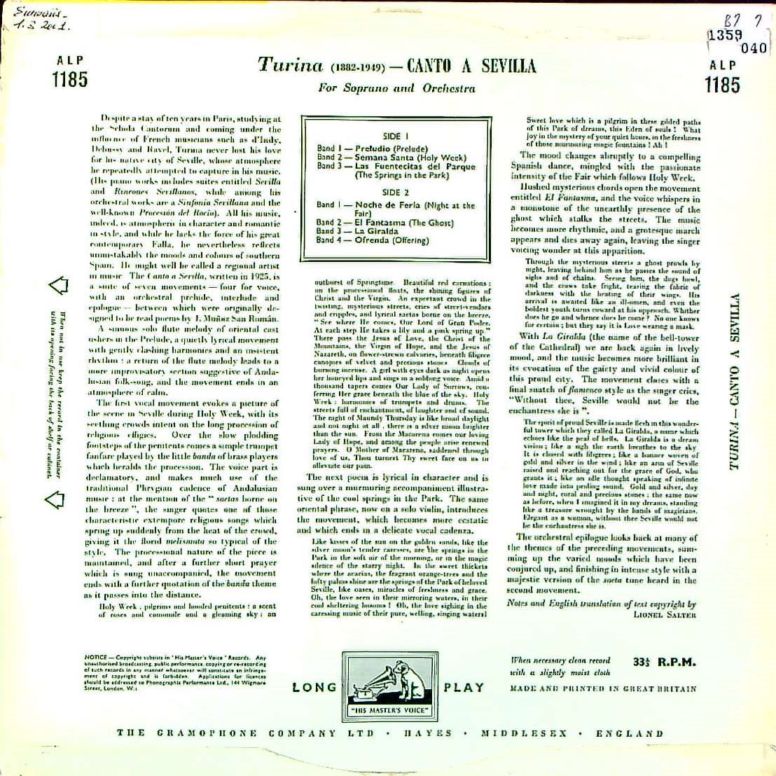 商品コード:1359-040[HMV] V.d.ロス・アンヘレス(s) A.フィストゥラーリ/ トゥリーナ:連作歌曲集「セビーリャの歌」