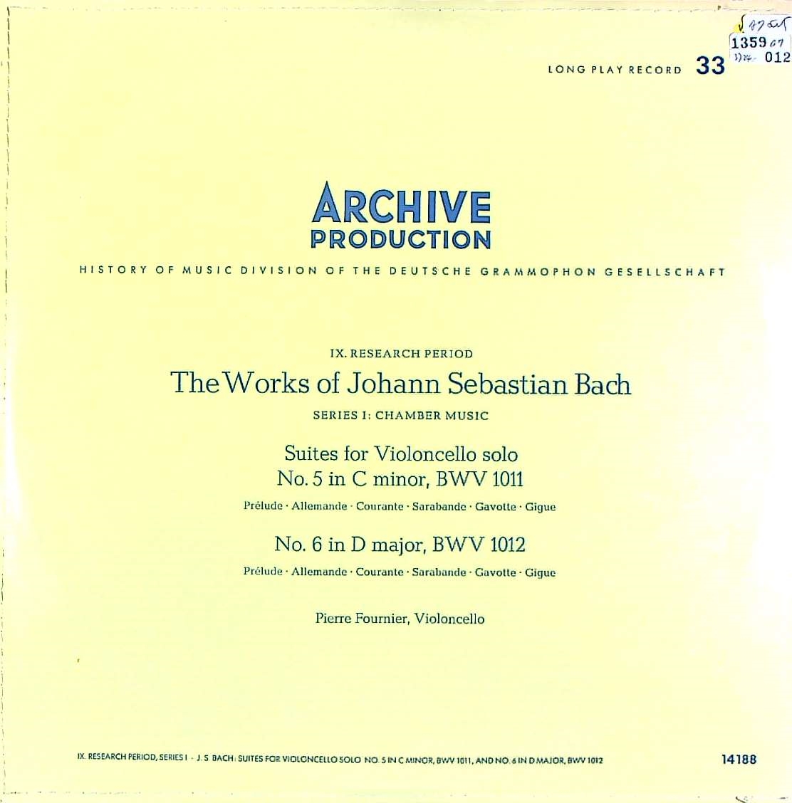 商品コード:1359-012[ARCHIV] P.フルニエ(vc) / バッハ:無伴奏Vc組曲(全6曲)BWV.1007~1012