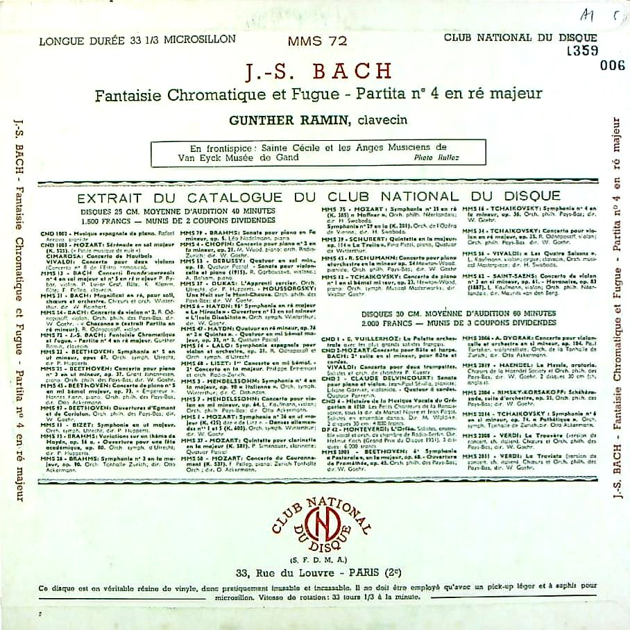 商品コード:1359-006[GUILDE du DISQUE] G.ラミン(cemb) / バッハ:Cemb作品集/半音階的幻想曲BWV.903, パルティータ4番BWV.828