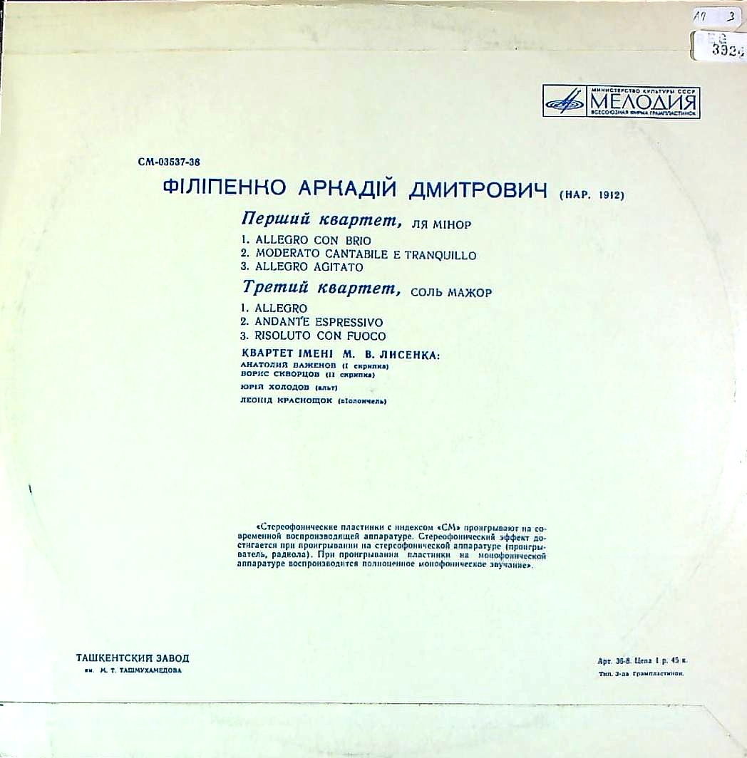 商品コード:REG-3924[露MELODIYA] リセンコQt. / フィリペンコ:SQ1番, 3番