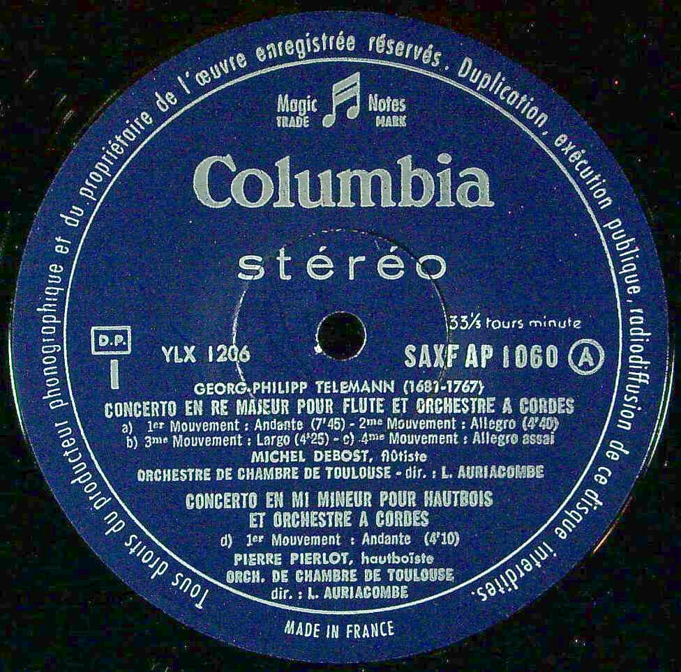 商品コード:1360-046[COLUMBIA] L.オーリアコンブ指揮 M.デュボースト(fl) 他/ テレマン:Fl協奏曲, Ob協奏曲 他
