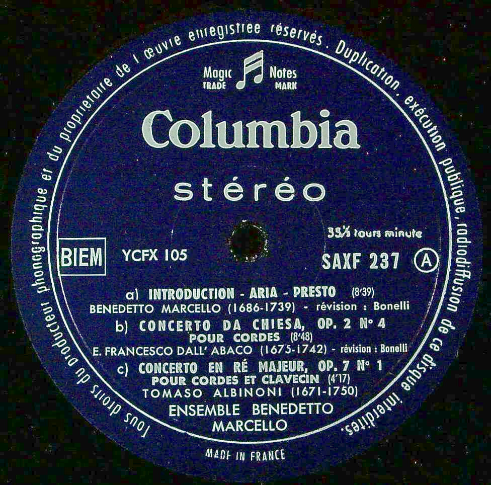 商品コード:1360-045[COLUMBIA] ベネデット・マルチェッロEns. / 18世紀イタリア学派Vol.1/マルチェッロ, ダッラーバコ 他