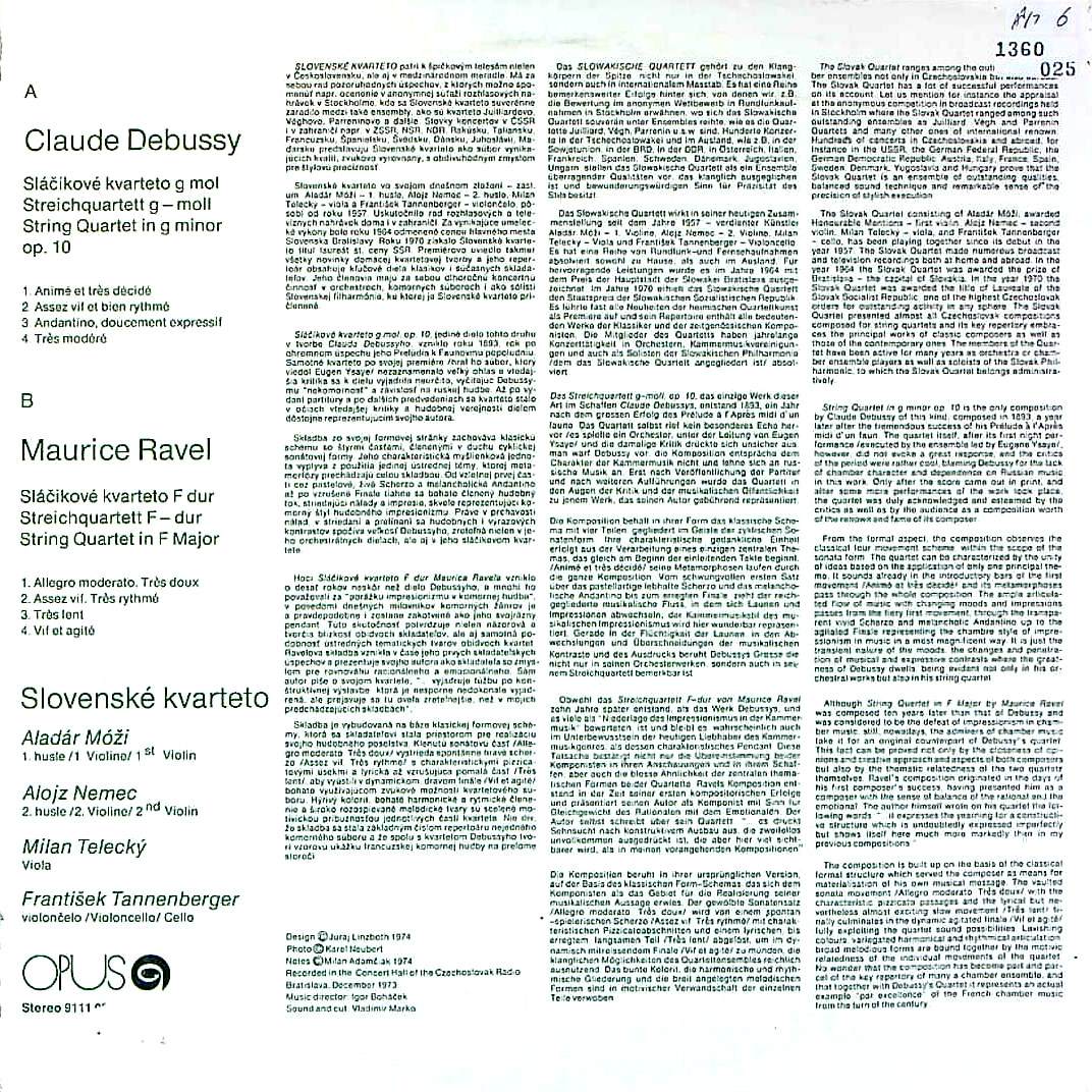 商品コード:1360-025[OPUS] スロバキアQt. / ドビュッシー:弦楽四重奏曲, ラヴェル:弦楽四重奏曲