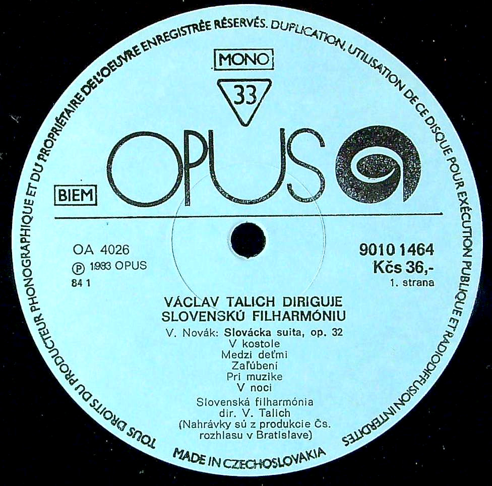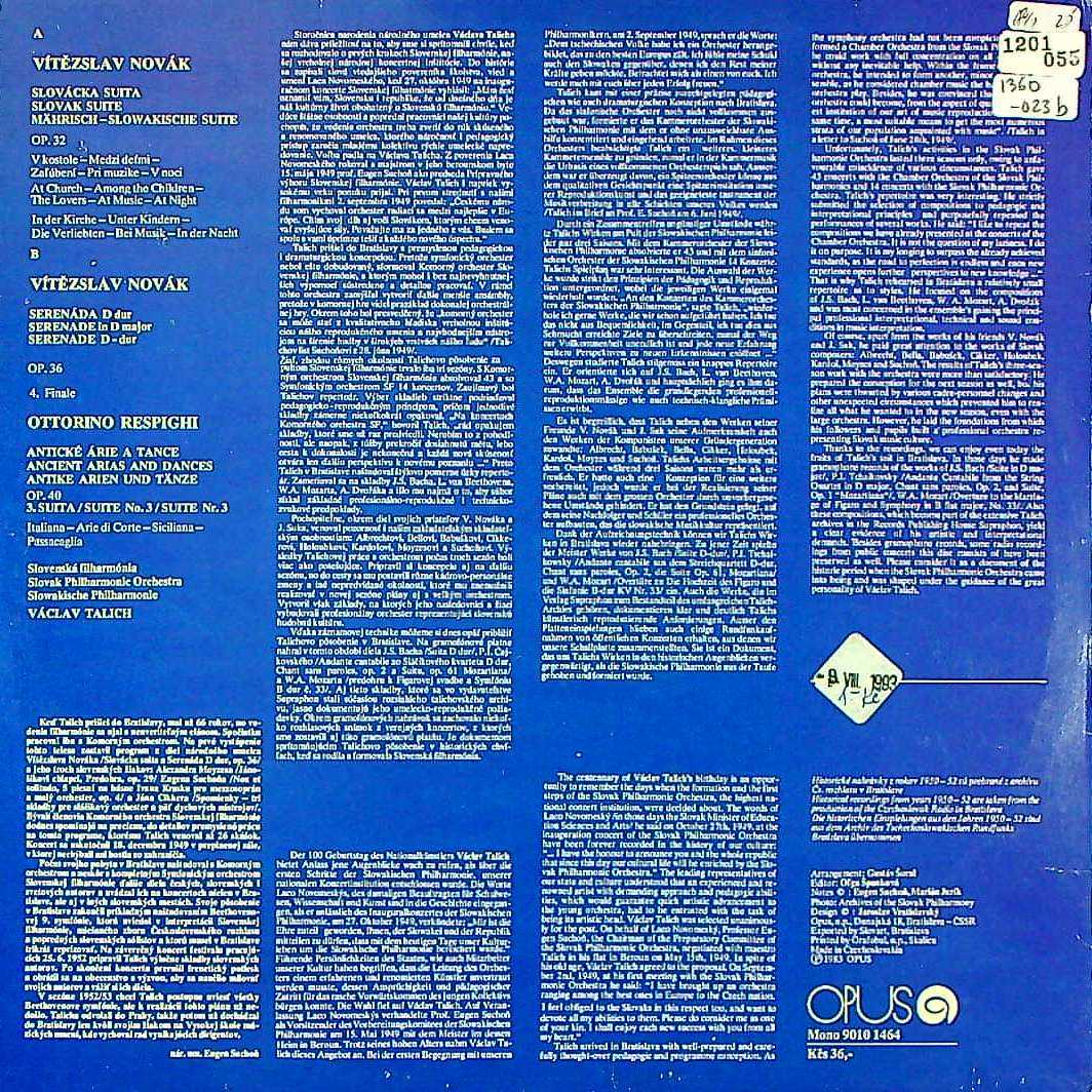 商品コード:1360-023b[OPUS] V.ターリヒ/ ノヴァーク:組曲「スロヴァキア」 他, レスピーギ:古風な舞曲とアリア第3組曲