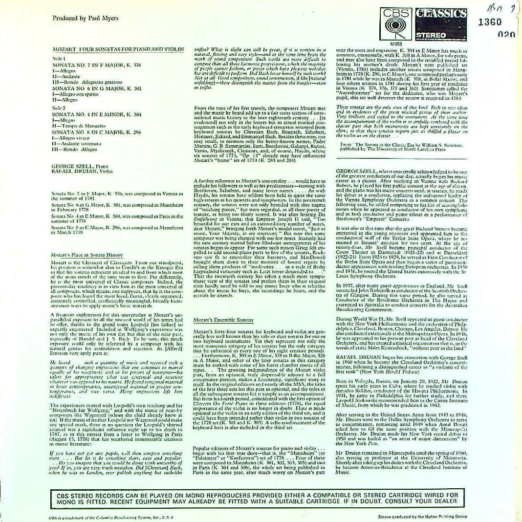 商品コード:1360-020[CBS] R.ドルイアン(vn)/ モーツァルト:Vnソナタ集/32番K.376, 18番K.301, 21番K.304, 17番K.296