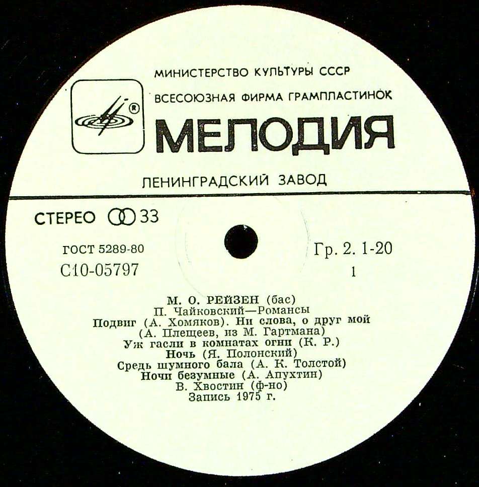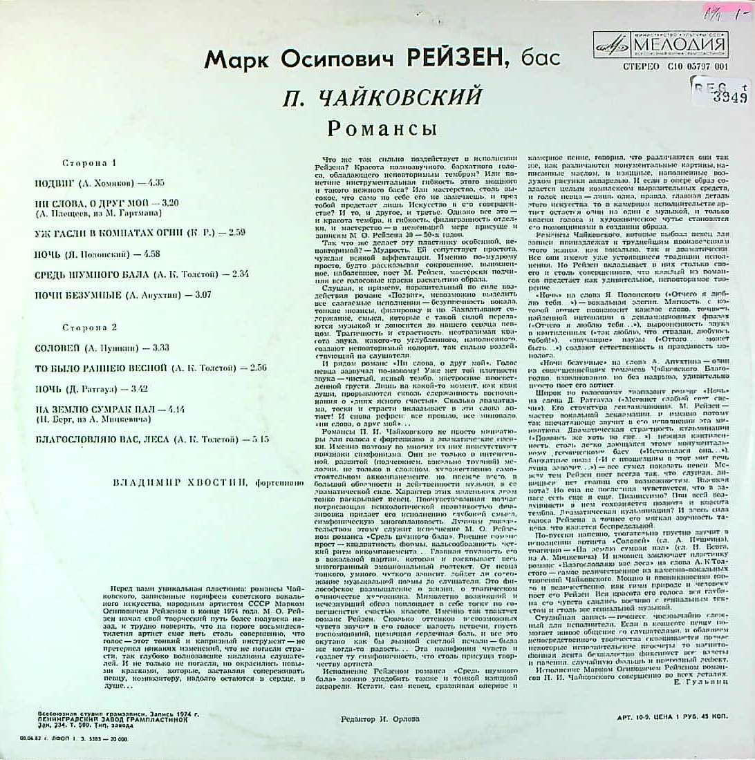 商品コード:REG-3949t[露MELODIYA] M.レイゼン(bs)/ 「チャイコフスキー歌曲集」 (全11曲)