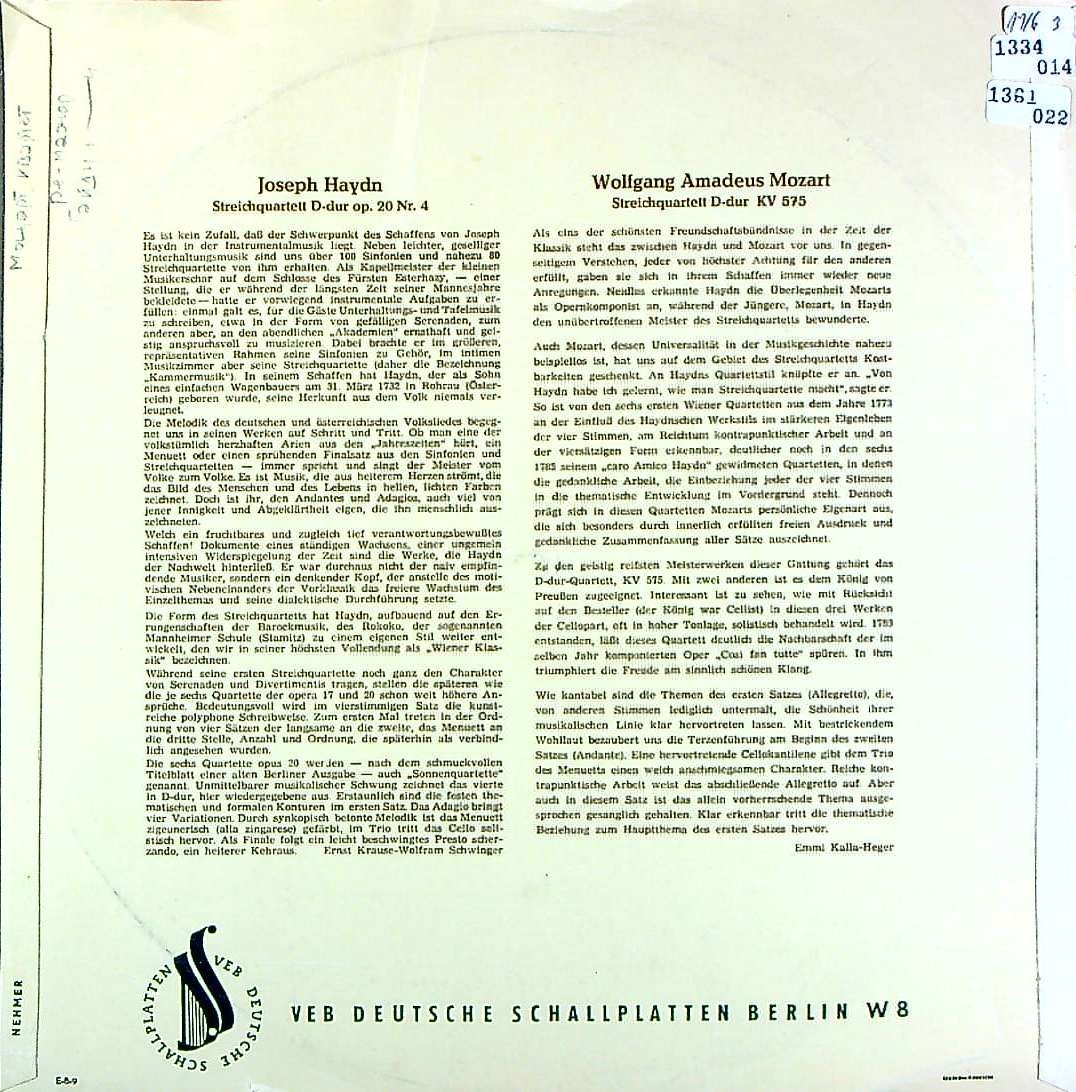 商品コード:1361-022[ETERNA] ゲヴァントハウスQt./ミハイロフQt. ハイドン:弦楽四重奏曲34番, モーツァルト:弦楽四重奏曲21番