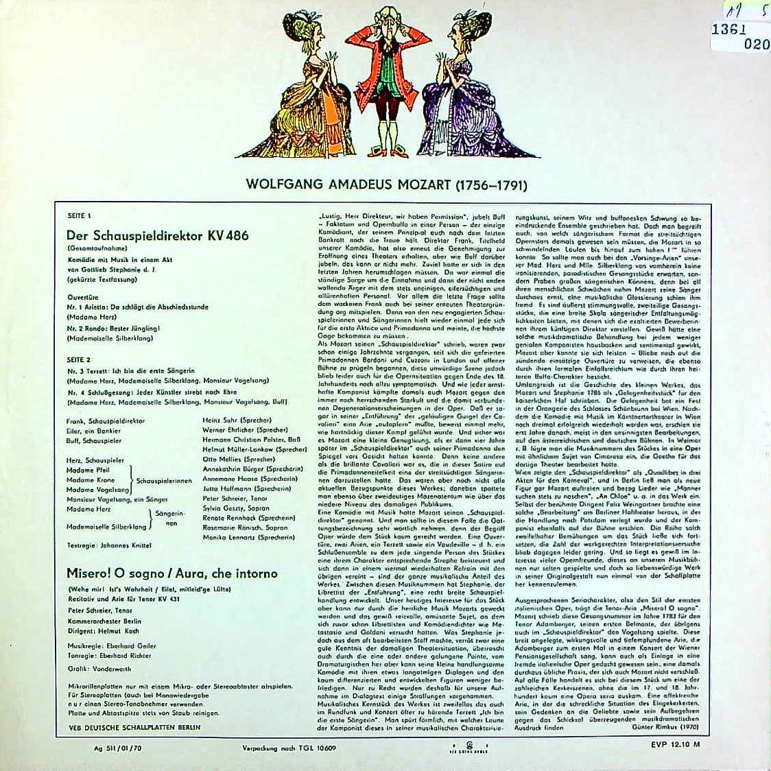 商品コード:1361-020n[ETERNA] H.コッホ/ モーツァルト:劇場支配人K.486, レチタティーヴォとアリアK.431