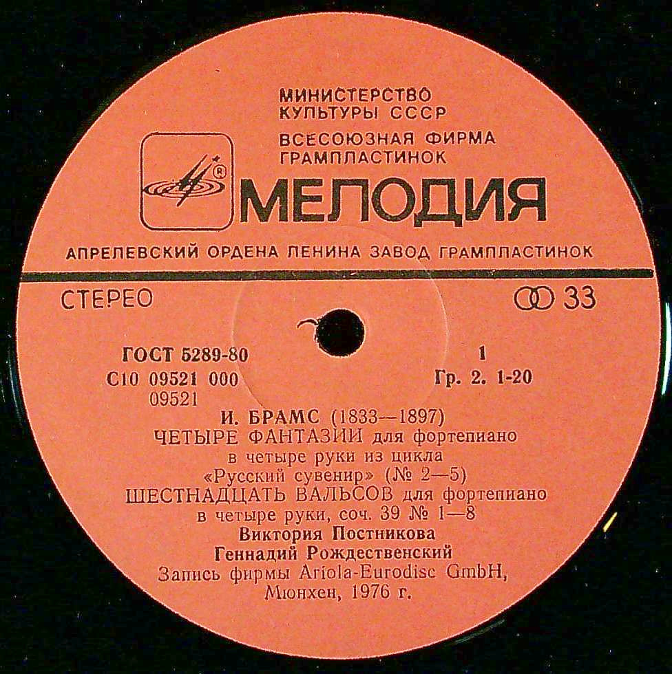 商品コード:REG-3973[露MELODIYA] G.ロジェストヴェンスキー, I.ポストニコワ(pf) / ロジェストヴェンスキー:ブラームス「ロシアの思い出」のモチーフによる4つの幻想曲 他