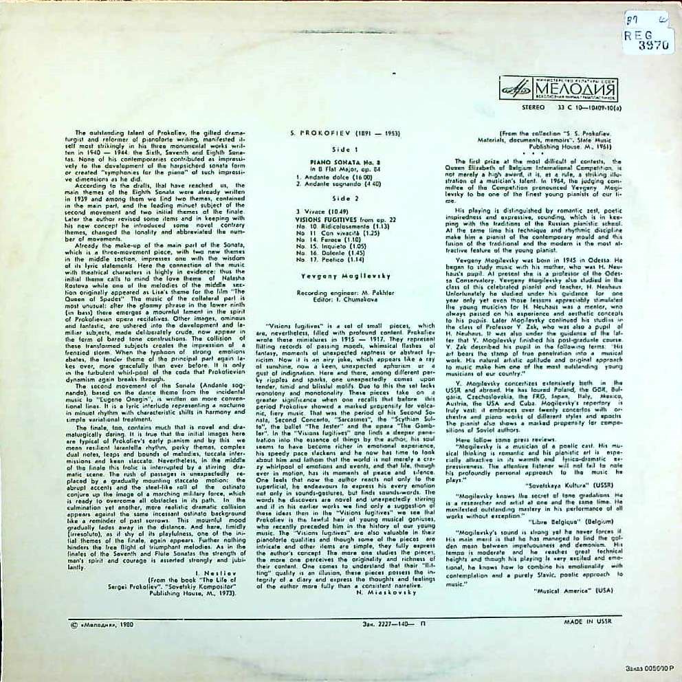 商品コード:REG-3970[露MELODIYA] E.モギレフスキー(pf) / プロコフィエフ:Pfソナタ8番 他