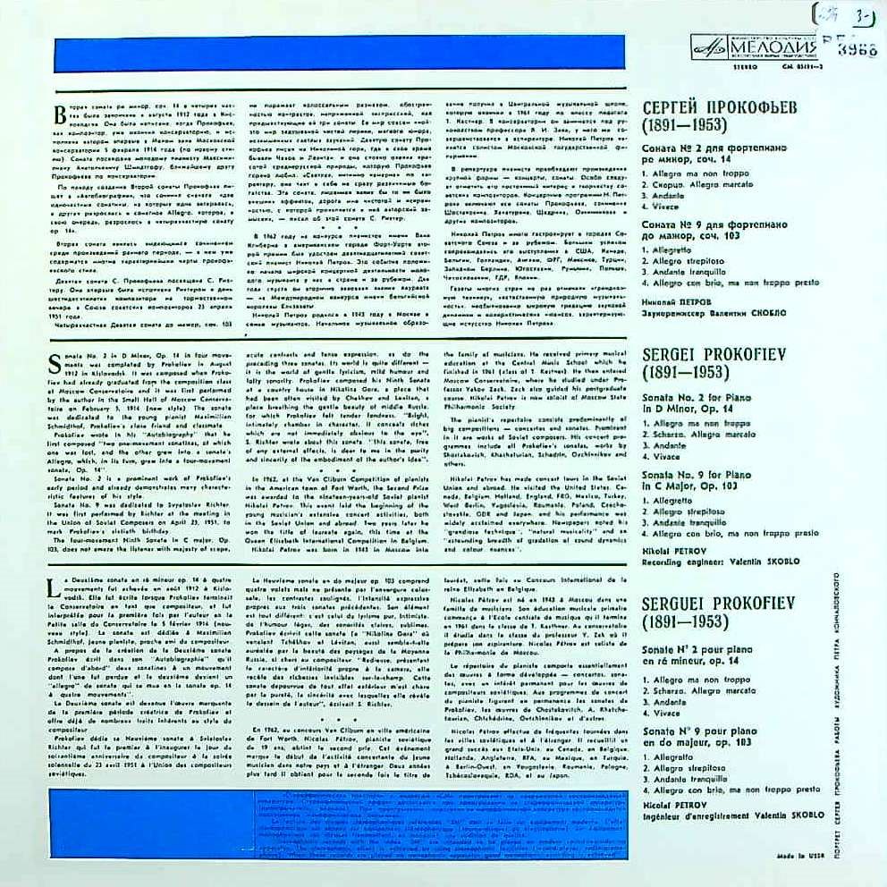 商品コード:REG-3968[露MELODIYA] N.ペトロフ(pf) / プロコフィエフ:Pfソナタ2番, 9番
