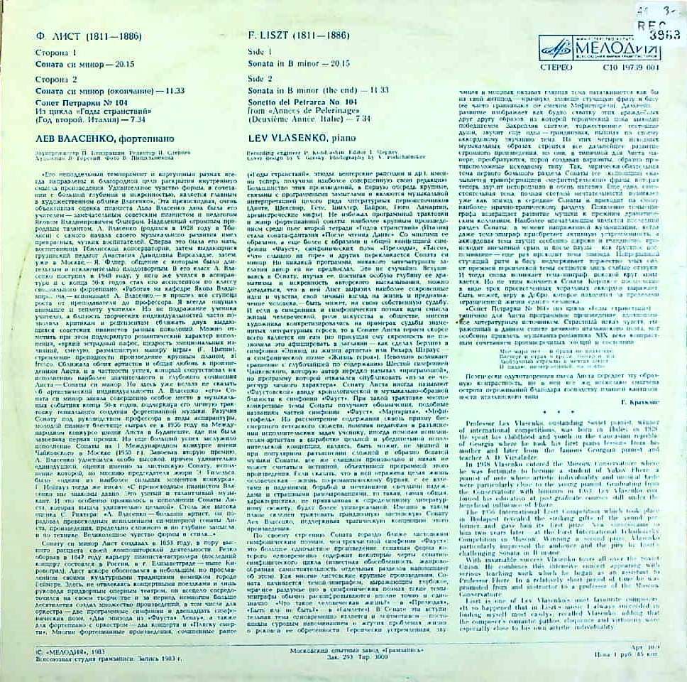 商品コード:REG-3963[露MELODIYA] L.ヴラセンコ(pf) / リスト:Pfソナタ, ペトラルカのソネット104番