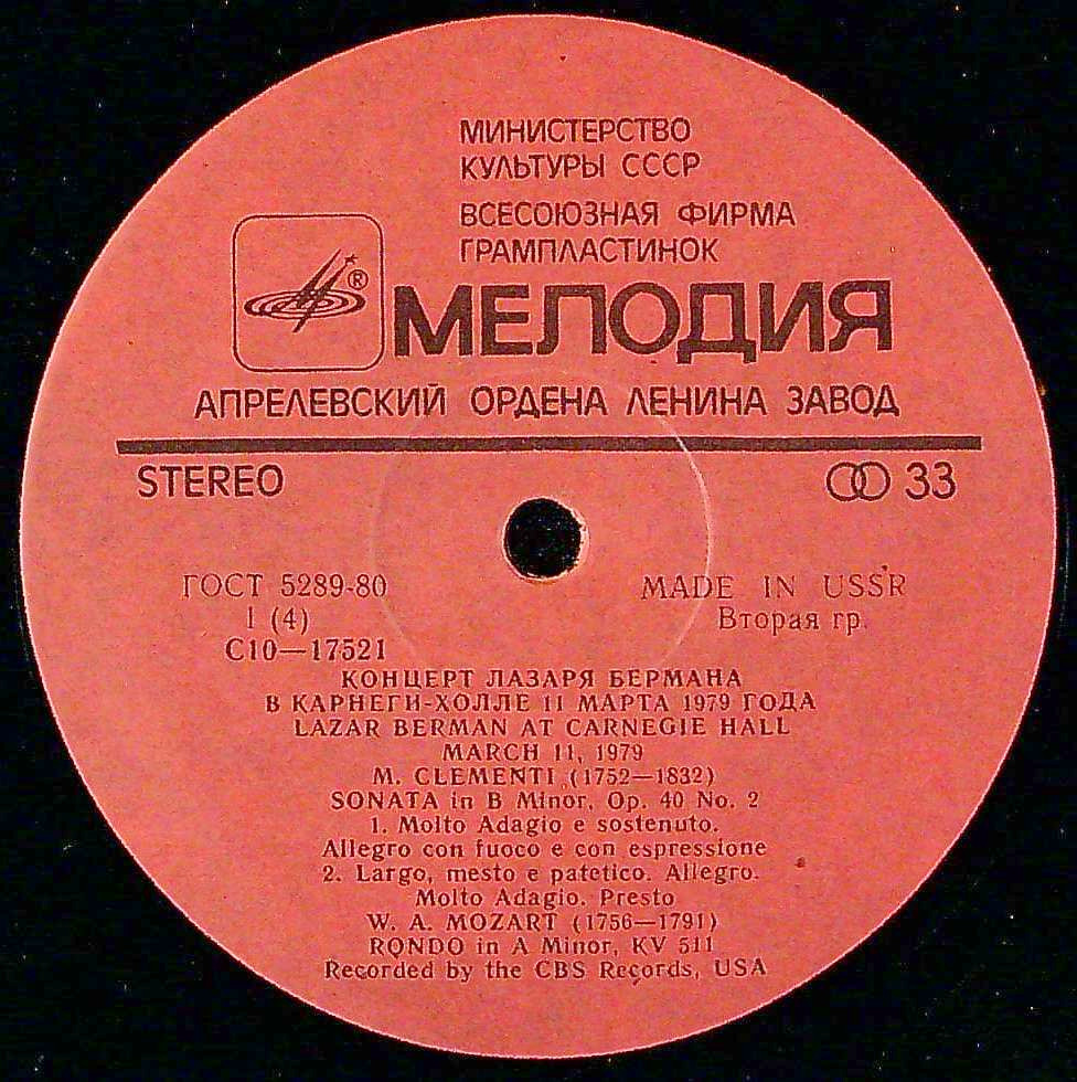 商品コード:REG-3958p[露MELODIYA] L.ベルマン(pf) / 「ベルマン・カーネギーホール公演」クレメンティ, モーツァルト, ショパン 他