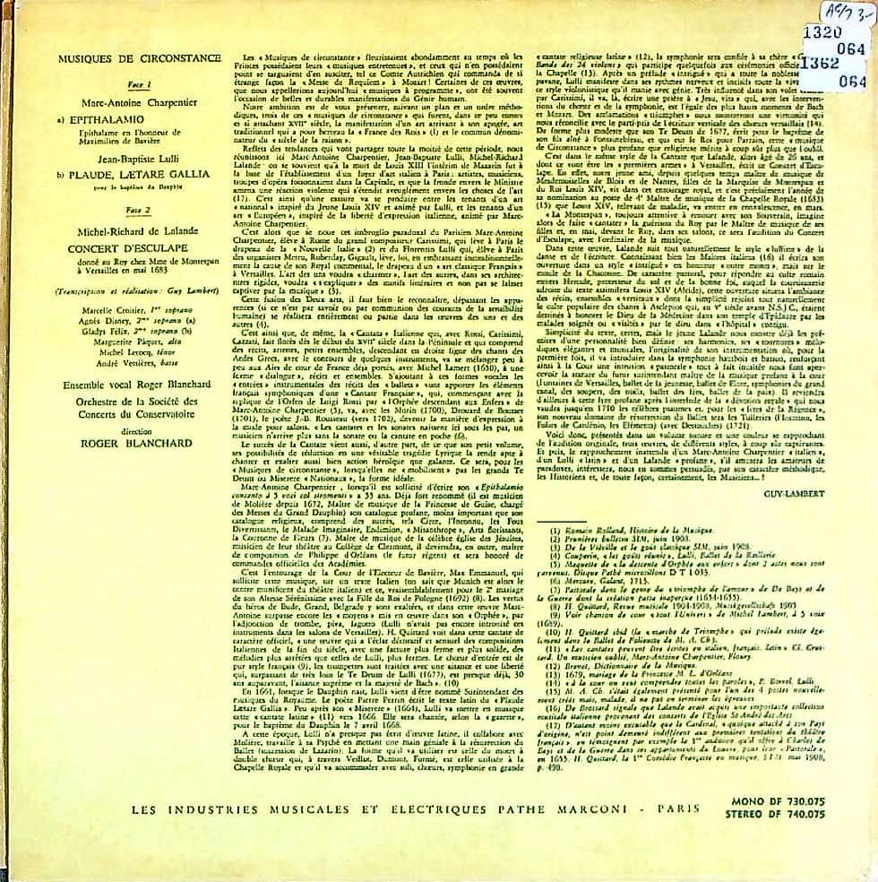 商品コード:1362-064[DF] R.ブランシャール/ Musiques De Circonstance(儀典作品集)/シャルパンティエ, リュリ, ドラランド