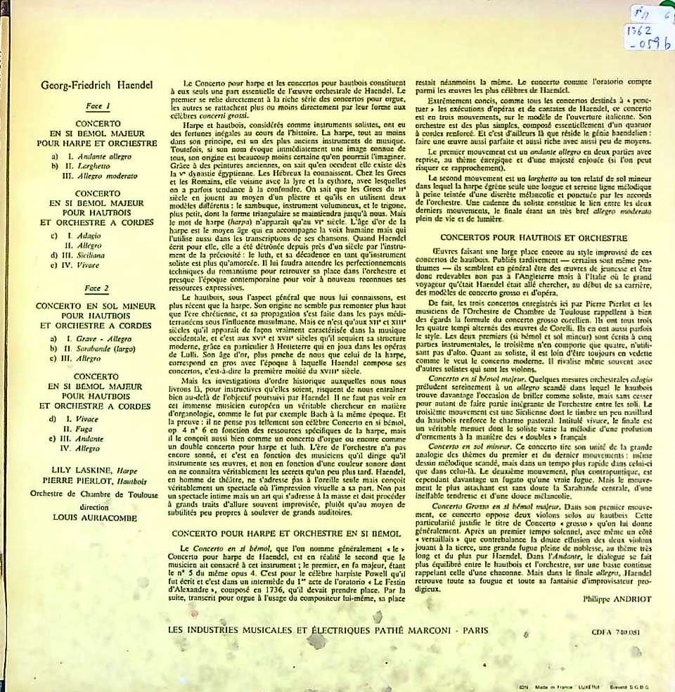 商品コード:1362-059b[DF] L.ラスキーヌ(hp) P.ピエルロ(ob)/ ヘンデル:Hp協奏曲, Ob協奏曲(3曲)