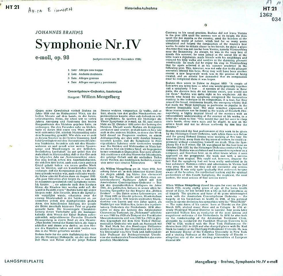 商品コード:1362-034[TELEFUNKEN] W.メンゲルベルク/ ブラームス:交響曲4番