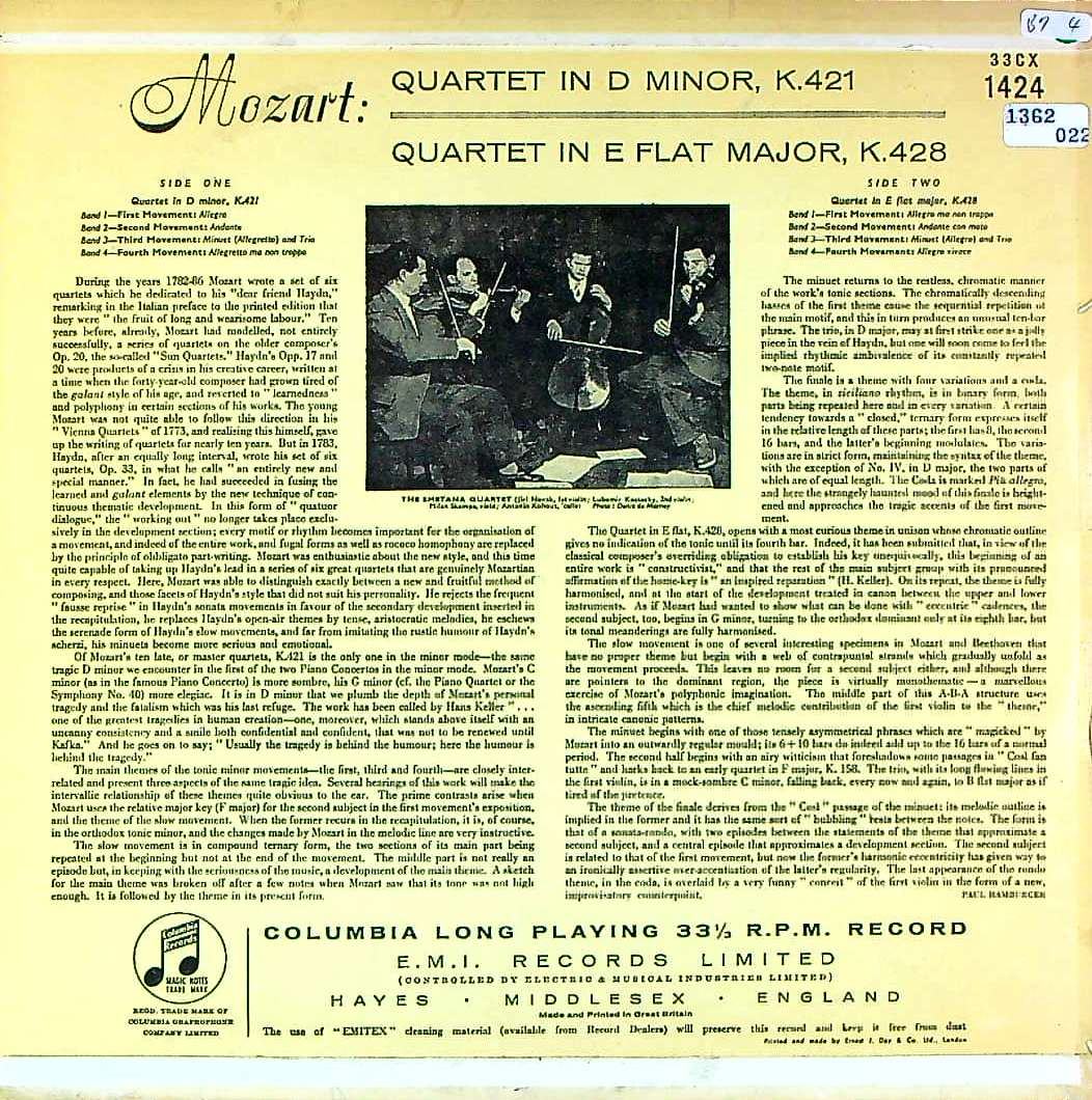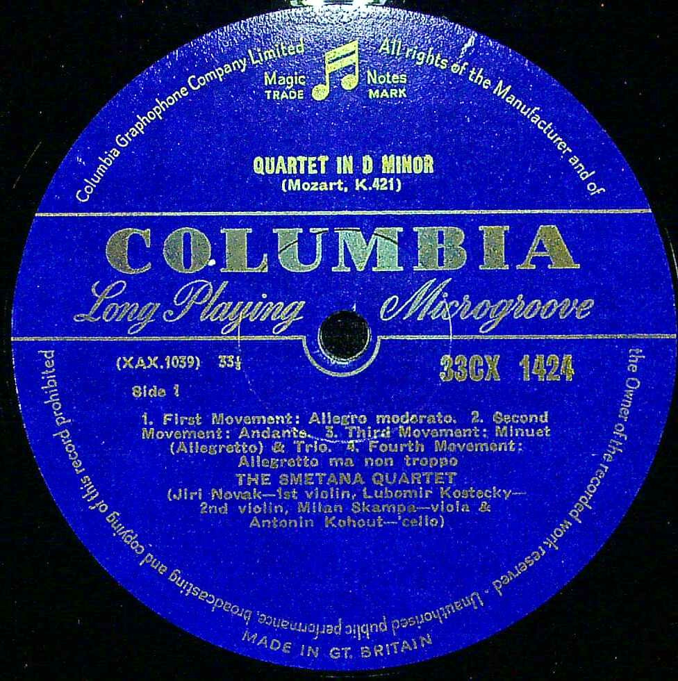 商品コード:1362-022[COLUMBIA] スメタナQt. / モーツァルト:弦楽四重奏曲15番K.421, 16番K.428