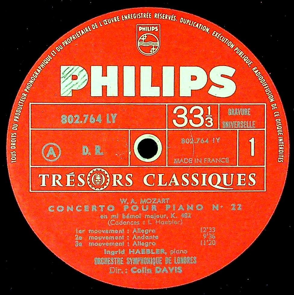 商品コード:1362-018b[PHILIPS] I.ヘブラー(pf)/ モーツァルト:Pf協奏曲22番K.482, 18番K.456