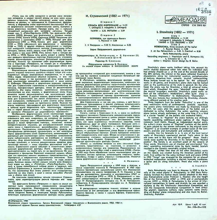 商品コード:REG-3988[露MELODIYA] B.ペトルシャンスキー(pf) / ストラヴィンスキー:Pfソナタ, ペトルーシュカ