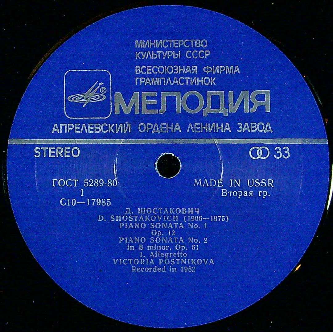 商品コード:REG-3986p[露MELODIYA] V.ポストニコワ(pf) / ショスタコーヴィチ:Pfソナタ1番Op.12, 2番Op.61