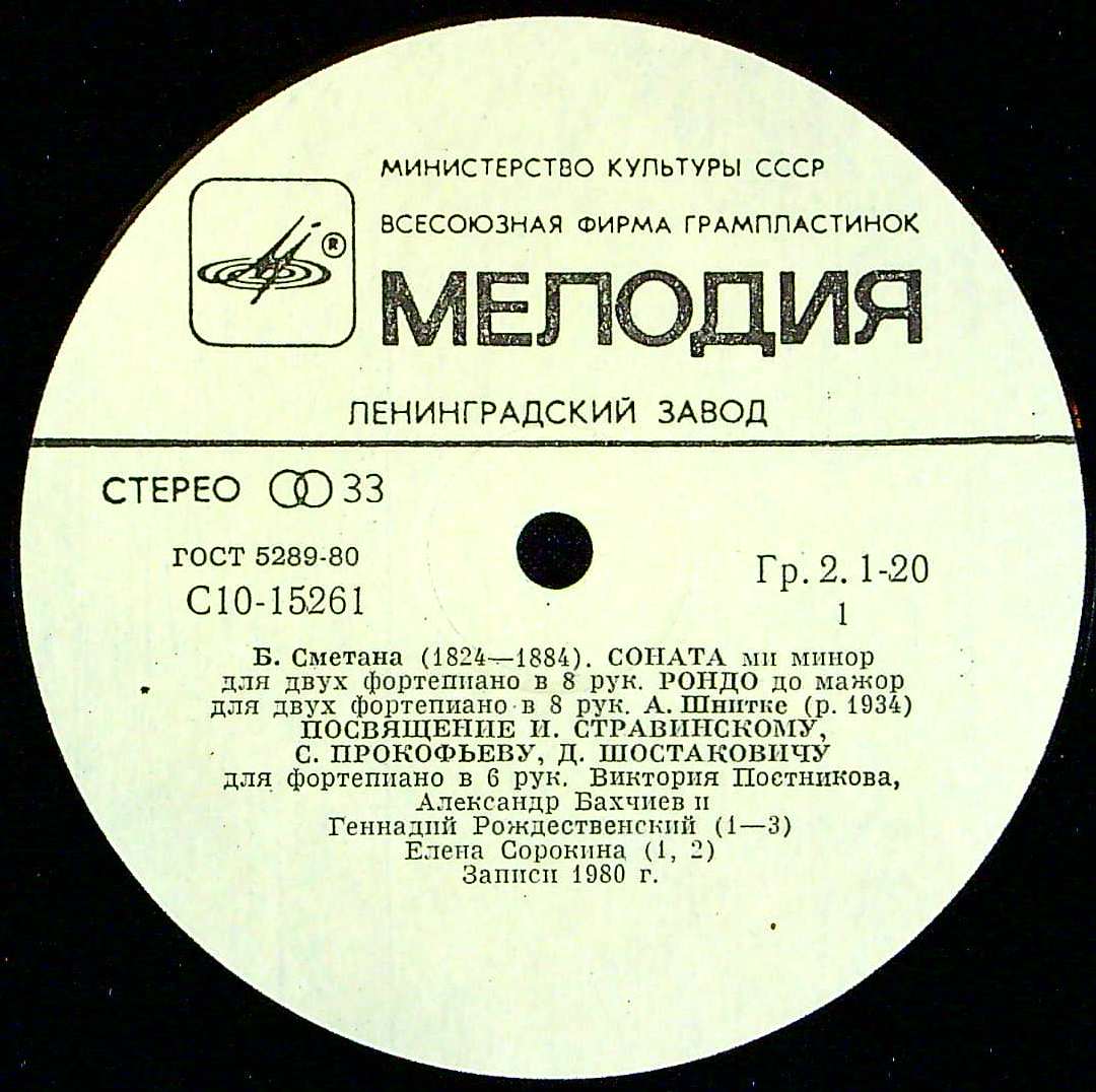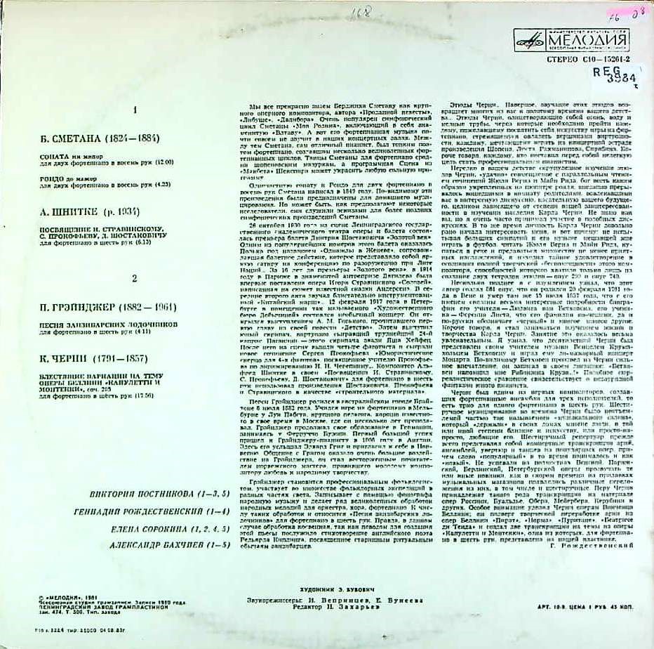 商品コード:REG-3984t[露MELODIYA] A.バフキエフ, E.ソローキナ, G.ロジェストヴェンスキー, V.ポストニコワ(pf) / スメタナ:Pfソナタ 変ホ長調(2台8手) 他
