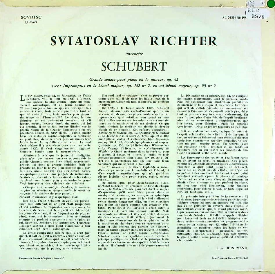 商品コード:REG-3978[露MELODIYA] S.リヒテル(pf) / シューベルト:Pfソナタ16番, 即興曲