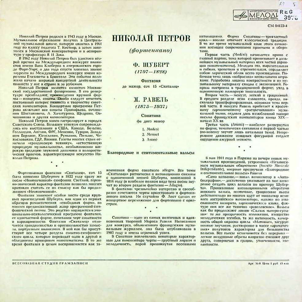 商品コード:REG-3976[露MELODIYA] N.ペトロフ(pf) / シューベルト:さすらい人幻想曲, ラヴェル:ソナチネ, 高雅で感傷的なワルツ