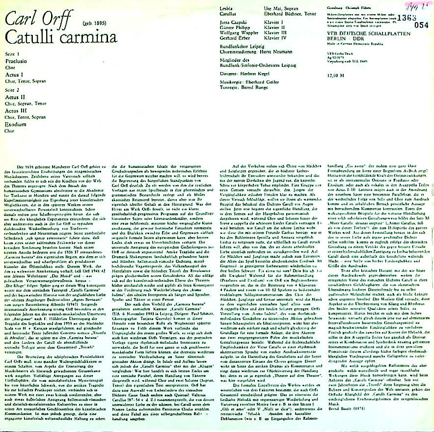 商品コード:1363-054t[ETERNA] H.ケーゲル/ オルフ:カトゥーリ・カルミナ