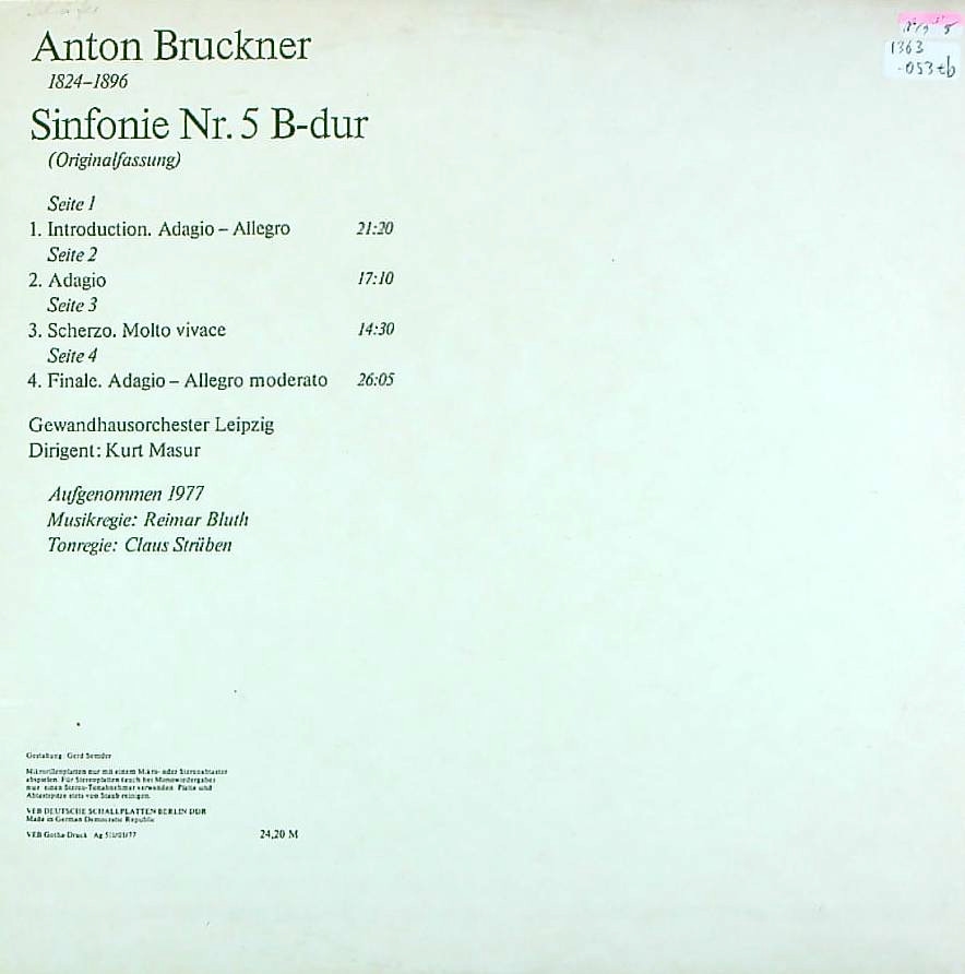 商品コード:1363-053tb[ETERNA] K.マズア/ ブルックナー:交響曲5番(原典版)