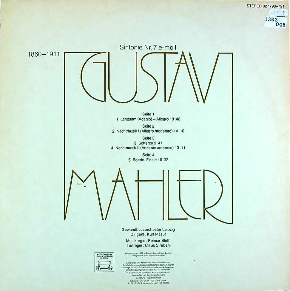 商品コード:1363-048[ETERNA] K.マズア/ マーラー:交響曲7番